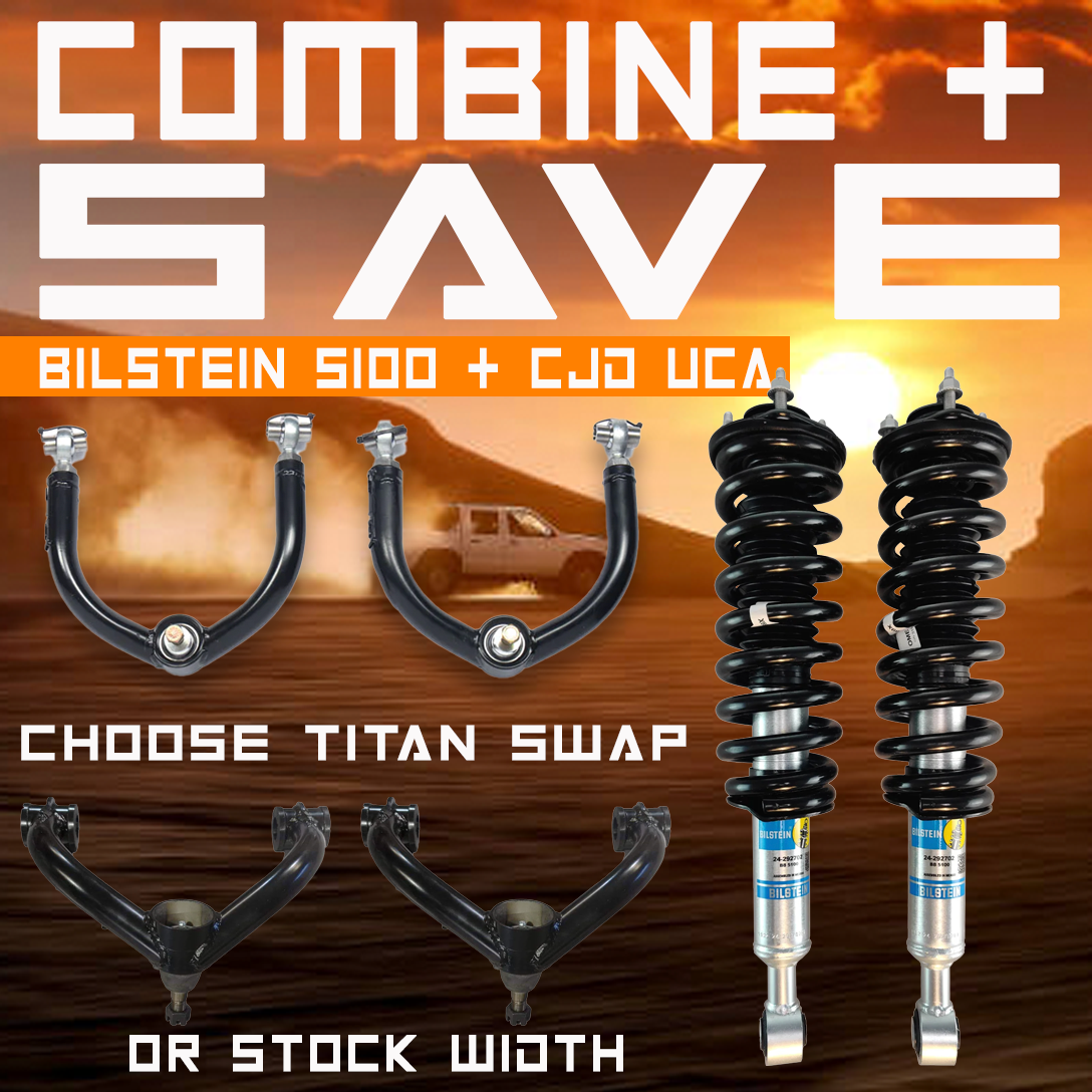 SAVE 10% When you pair our Upper Control Arms with the complete assembled Bilstein 5100's. Choose between our STOCK width balljoint upper control arms OR our Titan Swap Heim upper control arms!